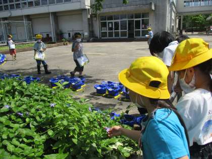 先週の図工の学習では、学校周りにある今の季節らしいものを探しました。