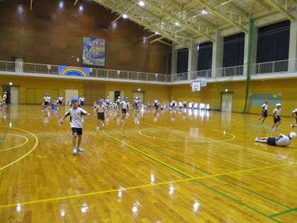 先日の体育では、4,5人のグループでタグを取り合う練習をしました。