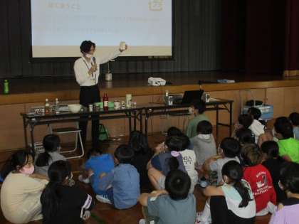 環境問題について学習しています。その一環として、富山市環境センターの方を招いて、3R(「リデュース(ごみの抑制)」「リユース(再使用)」「リサイクル(再生利用)」について学びました。どんな物がリサイクルできるか、どんな物にリサイクルされるかなど、実際の物を見せていただき、説明を聞きました。実感を伴って学ぶことができ、家庭でも生かせそうです。
