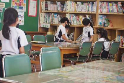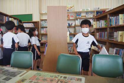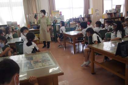 司書の先生から、図書室の本は、1万冊ほどあると聞き、子供たちは驚いていました。
