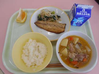 6月2日(木)今日の献立は、ごはん・牛乳・さばの塩焼き・香味和え・豚肉の南蛮煮・河内晩柑でした。香味和えは、ねぎと生姜が入っていました。薬味の風味が効いていて、おいしかったです。