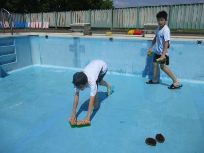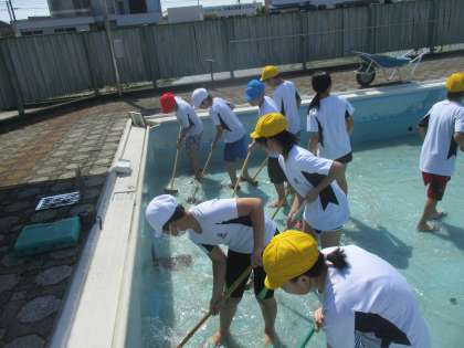 今日は、今月末に予定されているプール開きに向けて、6年生全員でプールの掃除をしました。1年間の垢のたまったプールでしたが、みんなで一生懸命こすったことで、ずいぶんときれいになりました。これでみんなが気持ちよく水泳学習に臨めそうです。