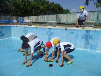 小プール、大プール、そしてシャワーや備品の整理や掃除を行いました。天候にも恵まれ、みんな丁寧に頑張っていました。6年生のみなさん、ありがとう!
