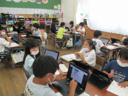 「駅の周りには、いろんな乗り物があつまっているね」「山の方は、バスが少し走っているだけだね」と、気付いたことを伝え合いました。