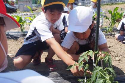 6月2日(木) 2年生 生活(3) 公開日 2022/06/02 更新日 2022/06/02 2023年度 2年生 トマトのわきめを摘んで、そのわきめを植えたり、水差しをしたりして、根が生えてくるか試している子供もいました。