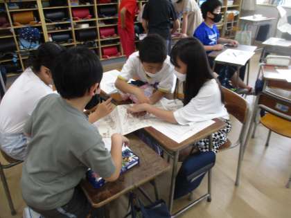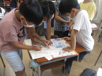 6月3日(金)4年生 社会 校外学習に向けて 公開日 2022/06/03 更新日 2022/06/03 2023年度 4年生 6月8日(水)にある校外学習に向けて、予定の確認と班別活動の話し合いをしました。 班別にどのようにまわるのかを地図に書き込んだり、うまく回れるように考えたりしていました。