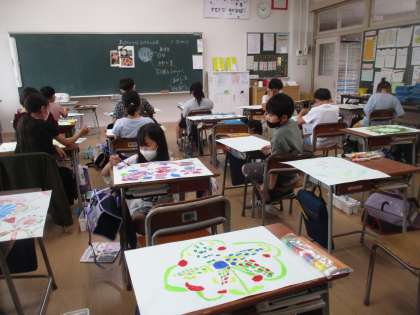 色の重ね方や形、クレヨンのはじき具合を考えながら真剣に取り組んでいました。