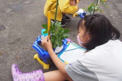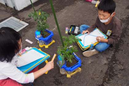 長さに着目して観察する子供もいました。算数の長さの学習を生かしています。