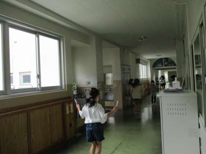 係のなわとび大会をしています。雨が降っているときは、学校の中で楽しく過ごしています。