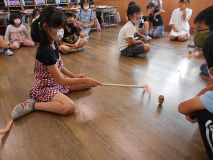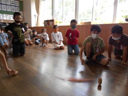 他のクラスも、たたきごまに挑戦しています。