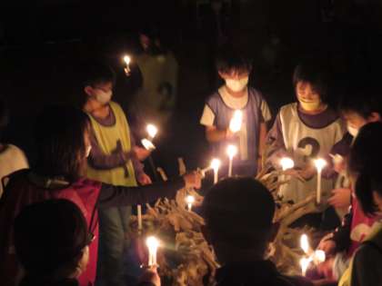 夜ご飯の後はキャンドルサービスをしました。みんな、よい顔をしていました!