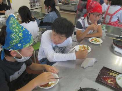 頑張って調理した後は、みんなで試食です。