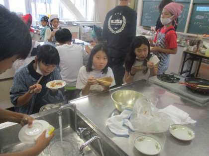 しっかりと炒められた野菜たちは、とてもおいしかったです。子供たちもとても満足そうでした。もちろん、終わった後には、しっかりと後片付けも頑張りました。