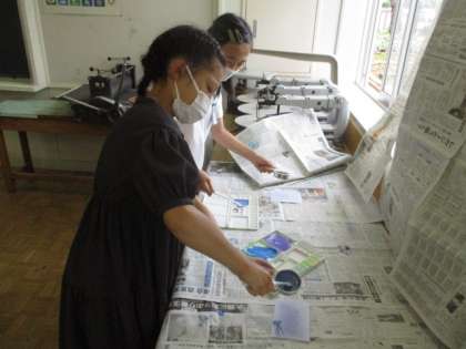 図画工作科では、水彩を用いて思いのままに形や色を表現しています。スパッタリングやドリッピングなどの技法を取り入れた様々な作品が生まれました。描いた作品から、どのようなこころのもようを見付けることができるか楽しみです。