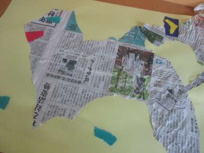 大きな紙をやぶき、そこから何に見えるかを考え、作品にしています。
