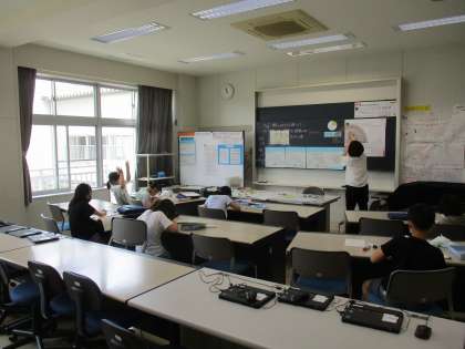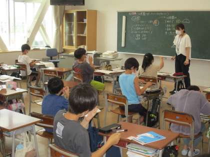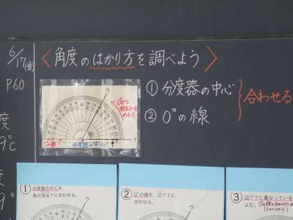 4年生は、角度の学習をしています。教室と少人数教室に分かれて学習を進めています。教室では、教科書に沿って、角度に関する用語や角度のはかり方を学習しています。少人数教室では、分からないことをすぐに聞くことができ、友達同士気軽に声を掛け合ったり、先生に聞いたりしながら学習しています。どちらの教室でも、自分に合った学びを進めています。