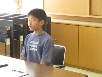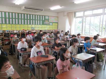 朝活動の時間に、プール開きの式をリモートで行いました。