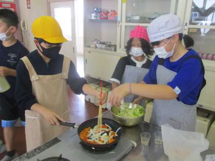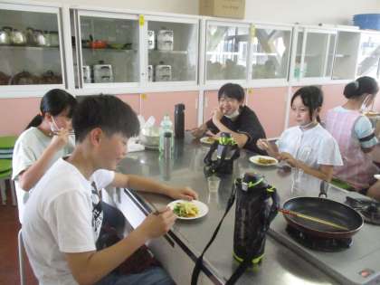 途中からは、笑顔も見られ、最後にはおいしく野菜炒めをいただきました。