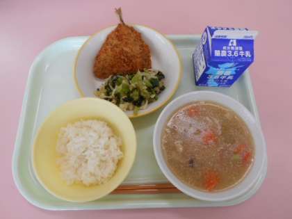 6月21日(火)今日の献立は、ごはん・牛乳・あじフライ・ごまびたし・冬瓜の吉野煮でした。冬瓜は夏が旬の野菜ですが、冬まで保存ができることから、漢字で「冬」の「瓜」と書いて「冬瓜」と名付けられました。富山県では冬瓜のことを「かもり」または「かんもり」と呼んでいる地域もあります。富山県では、富山市の百塚や魚津市、射水市などの地域で作られています。来月は、きときとランチで登場します。お楽しみに。