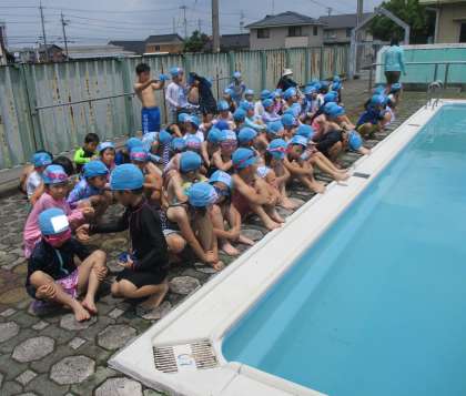 浅いプールではありますが、水とふれあいながら楽しんでいました。