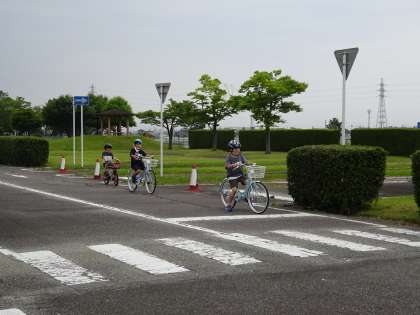交通安全公園では、自転車の正しい乗り方を一生懸命、練習しました。
