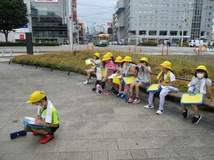 「市内電車がたくさんあるね」と話しています。