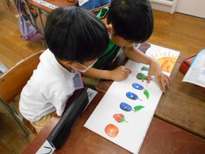 1年生は楽しそうに外国で書かれた物語を読んでいます。