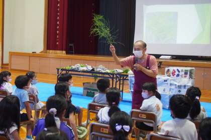 講師の方に来ていただき、野菜の知識を深めました。たくさんの野菜を見て、子供達は、興味津々で話を聞いていました。