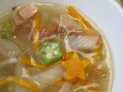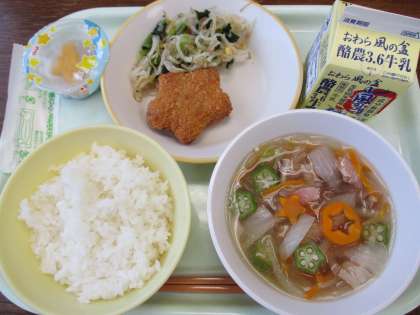 今日は、七夕にちなんだ献立になっています。メンチカツは星の形になっていたり、スープやデザートには星形の食材が入っていたりしました。スープに入っているはるさめは、天の川をイメージしているのでしょうね。