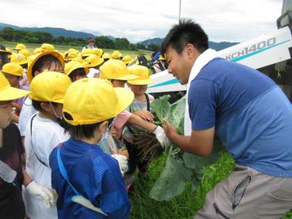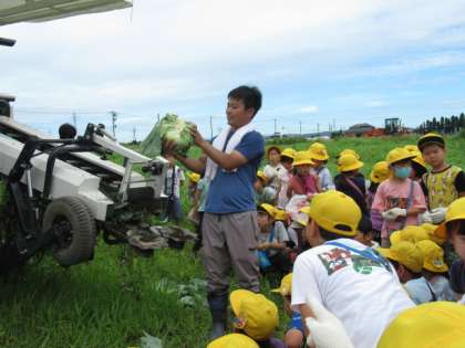 7月5日(火) 2年生 キャベツ畑見学(2) 公開日 2022/07/05 更新日 2022/07/05 2023年度 2年生 キャベツの芯を触り、「思ったよりかたい!」と話していました。 お相撲さんでも折れないと聞き、驚いている子供達でした。