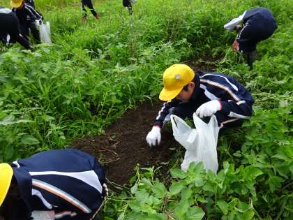 7月6日(水) 5年生 じゃがいも収穫体験(2) 公開日 2022/07/06 更新日 2022/07/06 2023年度 5年生 普段食べている野菜を畑から収穫するのは初めてという児童も多く、「じゃがいもの収穫がこんなに大変だとは知らなかった」「一つの茎からこんなにたくさんのじゃがいもができることにびっくりした」と驚きの声も聞かれました。