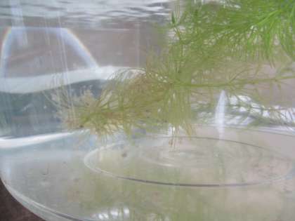 教室前の廊下では、メダカを飼って卵からかえして、育てています。毎日興味をもって眺めたり世話をしたりしている子供もいます。分かりにくいですが、下の写真には赤ちゃんメダカが泳いでいる様子が写っています。