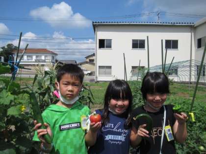 7月5日(木) 2年生やさい日記 公開日 2022/07/07 更新日 2022/07/07 2023年度 2年生 毎日、子供たちは畑の野菜の様子を見に行っています。今日は、トウモロコシやナス、中玉トマトなどを興味深く観察しました。 実がついていたり、なったりしていると喜びもひとしおです。