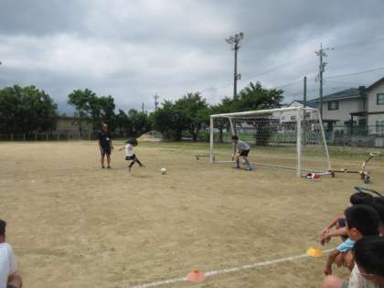 昨日は、大久保タイムに委員会主催の「先生と対決」がありました。ゴールを守っている先生に、2年生の子供たちがシュートを放ちました。