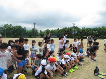 2年生の子供たちは、「がんばれ〜」と声援のかわりに拍手をして応援しました。シュートする子も、応援の子供たちもたのしいひとときを過ごしました。