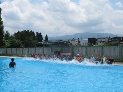 お天気もよく、絶好のプール日よりです。子供たちの楽しそうな様子をご覧ください。