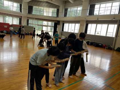 7月12日(火) 6年生「遊びリンピック」 公開日 2022/07/12 更新日 2022/07/12 2023年度 6年生 今日の午前中は、あいにくの雨でしたが、代わりに、「遊びリンピック」をしました。一つ目の活動は、半分に切った筒を使って、ボールリレーをし、ボールをカップの中に入れるゲームです。二つ目は、ペットボトルの口をゴールにし、胸の高さから割り箸を落として入れるゲームです。 どちらの活動も、友達と協力することが大切です。子供たちは、温かい言葉をかけ合いながら行っていました。