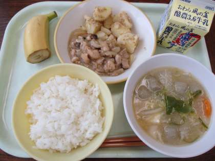7月13日(水) 今日の給食 公開日 2022/07/13 更新日 2022/07/13 給食室から 7月13日今日の献立は、ごはん、牛乳、あっさりチキン、ごまポテト、つみれ汁、バナナです。つみれ汁にはつみれがたくさん入っていて、食べ応えがありました。今日もおいしくいただきました。