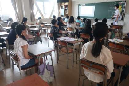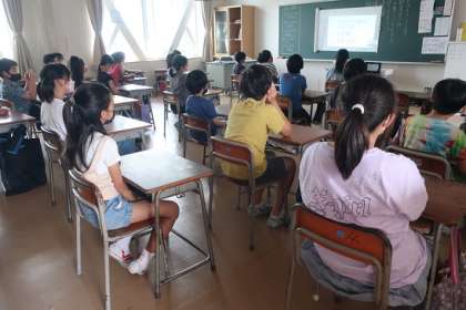 4年生は、校長先生の話を聞き、「どんなことに挑戦しようかな」と考えながら参加していました。
