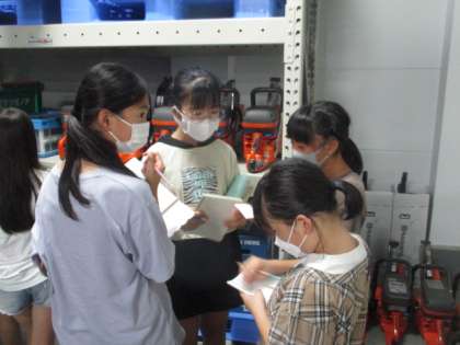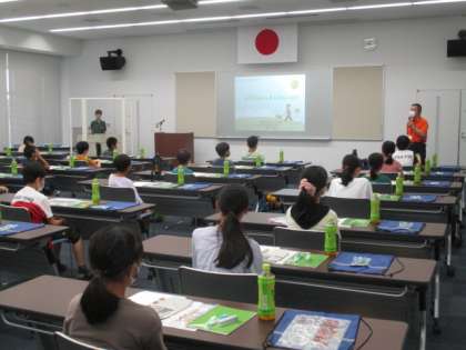 5年生の代表児童が、四季防災館で行われたBFCの集いに参加しました。まずは防災士の方から、富山県で起こりうる災害について話を聞きました。その後、備蓄倉庫の見学では、たくさんのトイレやテントなどが災害に備えて準備されていることを知りました。