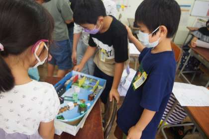 8月30日(火) 2年生 自由研究(1) 公開日 2022/08/30 更新日 2022/08/30 2023年度 2年生 2学期が始まり、自分作品や調べたものを紹介したり、友達の作品を見たりしました。