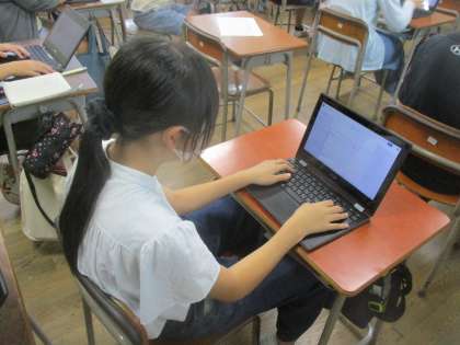 今日は、よりクロムブックを使いこなせるようになり、いろいろな場面で生かせるようにしようと、ICT支援員の方に指導をいただいて、アンケートの作り方を学びました。子供たちは、真剣に話を聞いて集中して取り組んでいました。学んだことを生かして、今後の学習や生活をより豊かにして欲しいと思います。