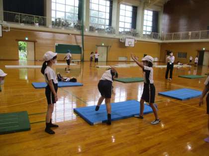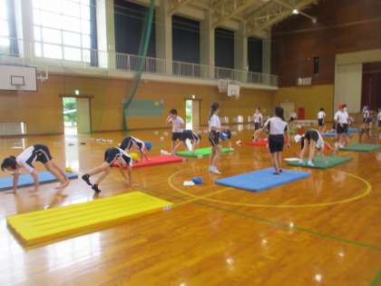 9月1日(木)4年生 体育 マット運動 公開日 2022/09/02 更新日 2022/09/02 2023年度 4年生 今日は1学期から続いたマット運動の最終日です。 汗いっぱいになるまでたくさん練習しました。
