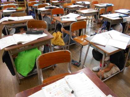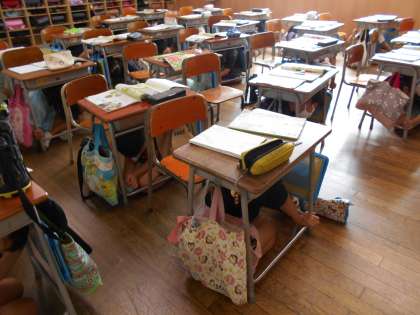 シェイクアウト訓練では、すばやく身を守る行動をとることができました。