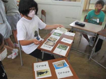 図工科では、アートカードを様々な言葉にグループ分けする学習をしました。それぞれが違ったイメージや印象をもち、芸術作品を鑑賞していました。