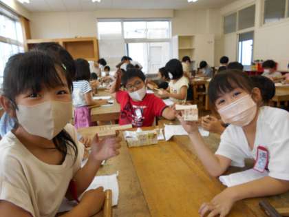 9月7日(水) 3年生 図工2 公開日 2022/09/07 更新日 2022/09/07 2023年度 3年生 はじめて使う道具に緊張している人もいましたが、使いながら慣れていきました。 木材を組み合わせて、面白い姿にしていました。