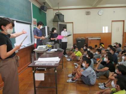 9月8日(木) 3年生 学年集会 公開日 2022/09/08 更新日 2022/09/08 2023年度 3年生 総合で学習した大久保の歴史を、学習発表会で発表します。 今日は先生たちで台本を読みました。どの役をやろうかワクワクしながら聞きました。