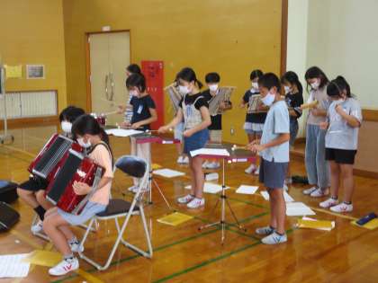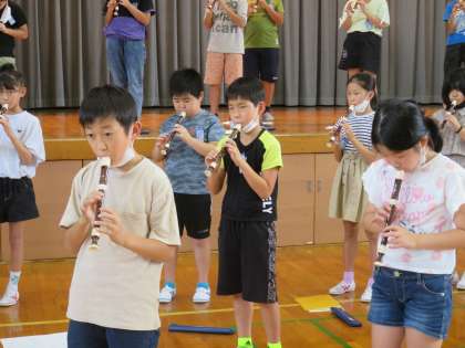 9月12日(月)4年生 音楽会練習2 公開日 2022/09/12 更新日 2022/09/12 2023年度 4年生 合奏では、ピアノの音を聞くことを意識しました。 リズムと心を合わせ、ずれないように吹こうとしていました。