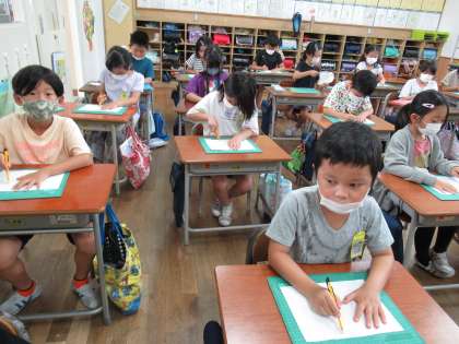 緊張した面持ちで、子供たちは取り組んでいました。直線や曲線が切れたときには、喜んでいました。