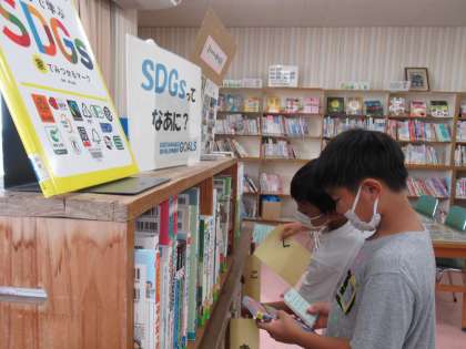 2学期に入り、2年生は、個人カードを使って、本の貸し出しを行っています。本の返却が、随分スムーズになってきました。子供たちは、うきうきしながら本を選んでいました。